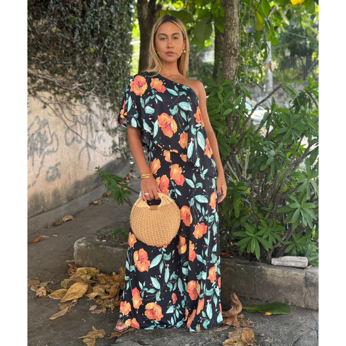 Macacão Amsterdam, modelo total comfort de um ombro só e estilo pantalona com modelagem diferenciada para um caimento impecável, produzido em fluity digital, tecido que não precisa passar e seca rapidinho.