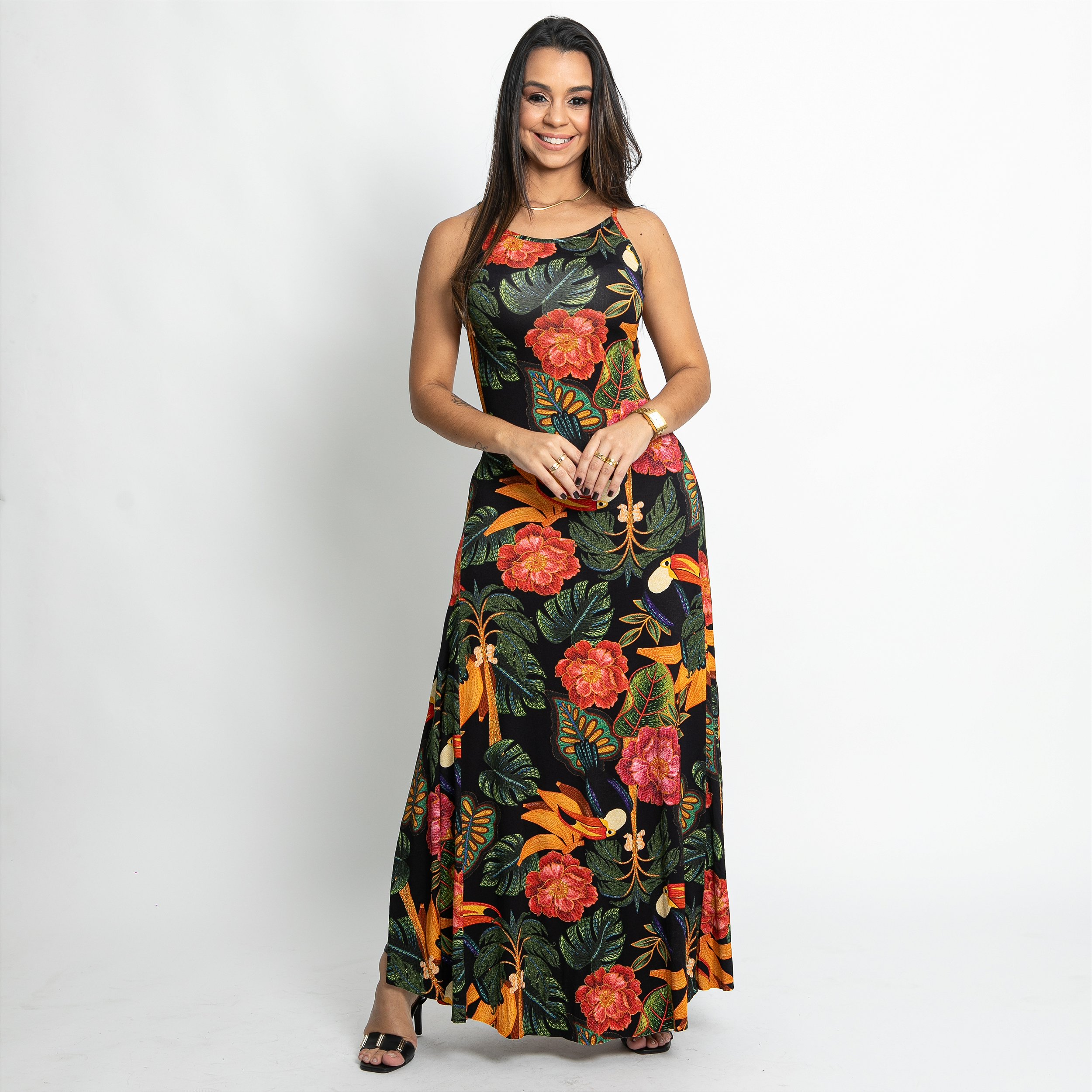 Este vestido é versátil e pode ser utilizado em diferentes momentos, seja no dia a dia ou em ocasiões especiais. Sua modelagem longa proporciona um visual sofisticado e atual.